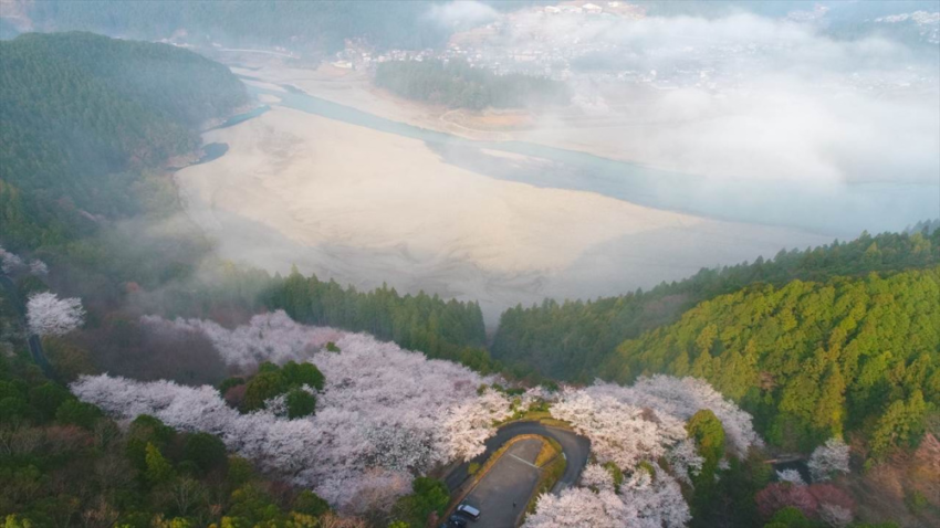 和歌山県内でも屈指の桜の名所として知られ、「日本さくら名所100選」に選定された古座川町の七川(しちかわ)ダム。