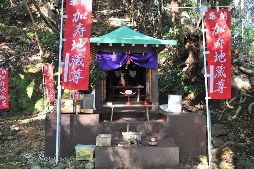 清水峠、二河峠から湯川までの道は熊野古道らしい道を歩くことができ、駿田峠は加寿地蔵が祀られています。
