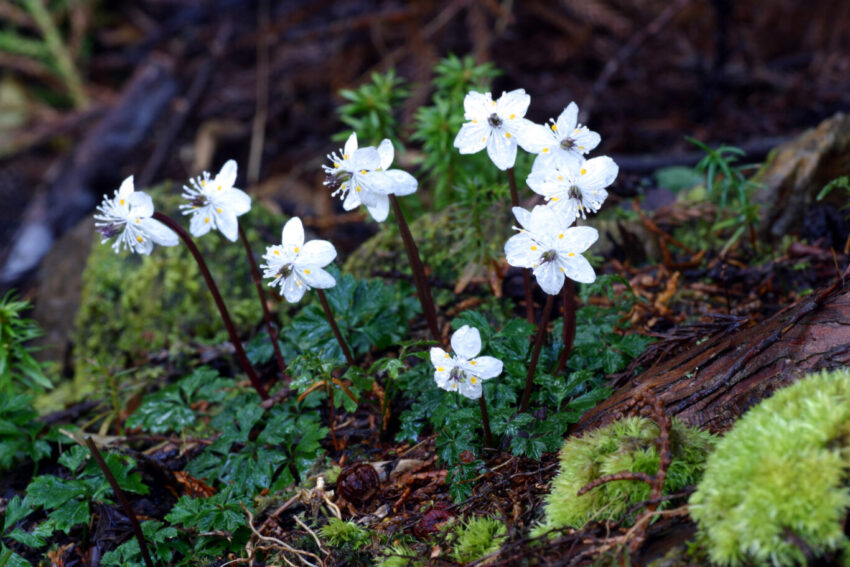 本宮町周辺では2月頃に咲くバイカオウレンが特に美しいです。