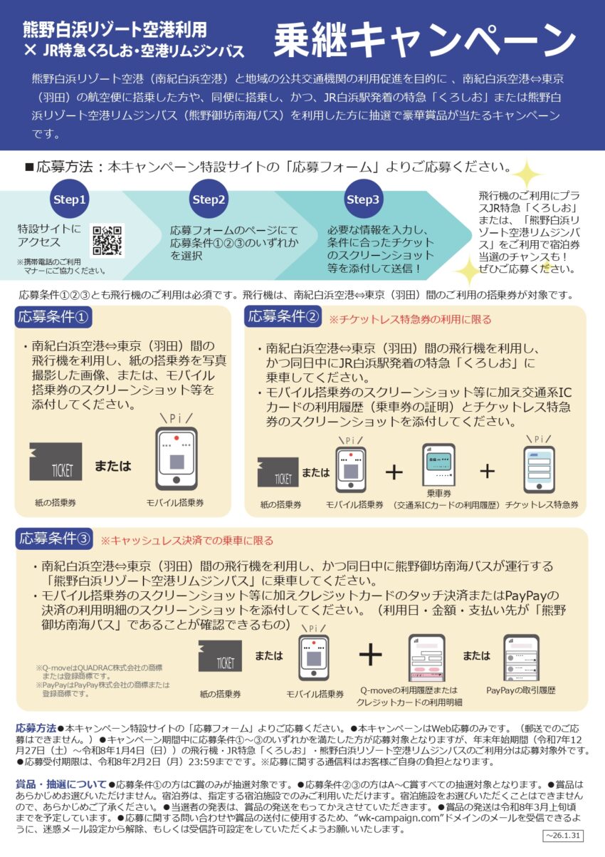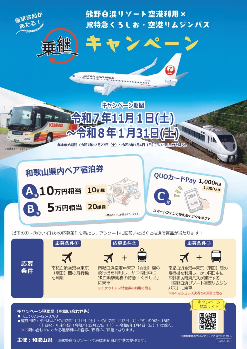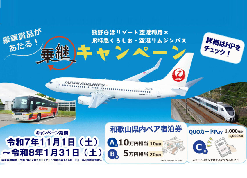 熊野白浜リゾート空港利用×JR特急くろしお・空港リムジンバス  乗継キャンペーン