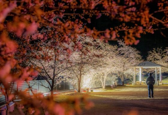 3月上旬 鶴川公園 河津桜 ライトアップ <古座川町>