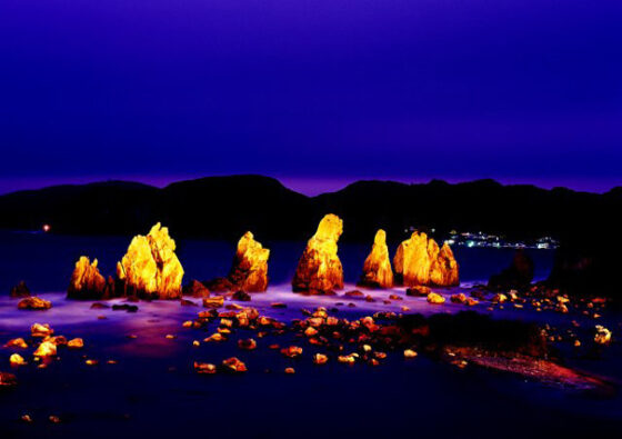 国指定名勝天然記念物の橋杭岩をライトアップされ、幻想的な雰囲気の橋杭岩を見ることができます!第13回(2017年度)日本夜景遺産に認定されました。