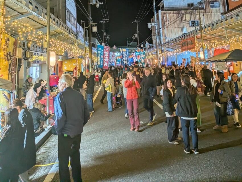 那智勝浦町の紀伊勝浦駅前と商店街がライトアップ中です!