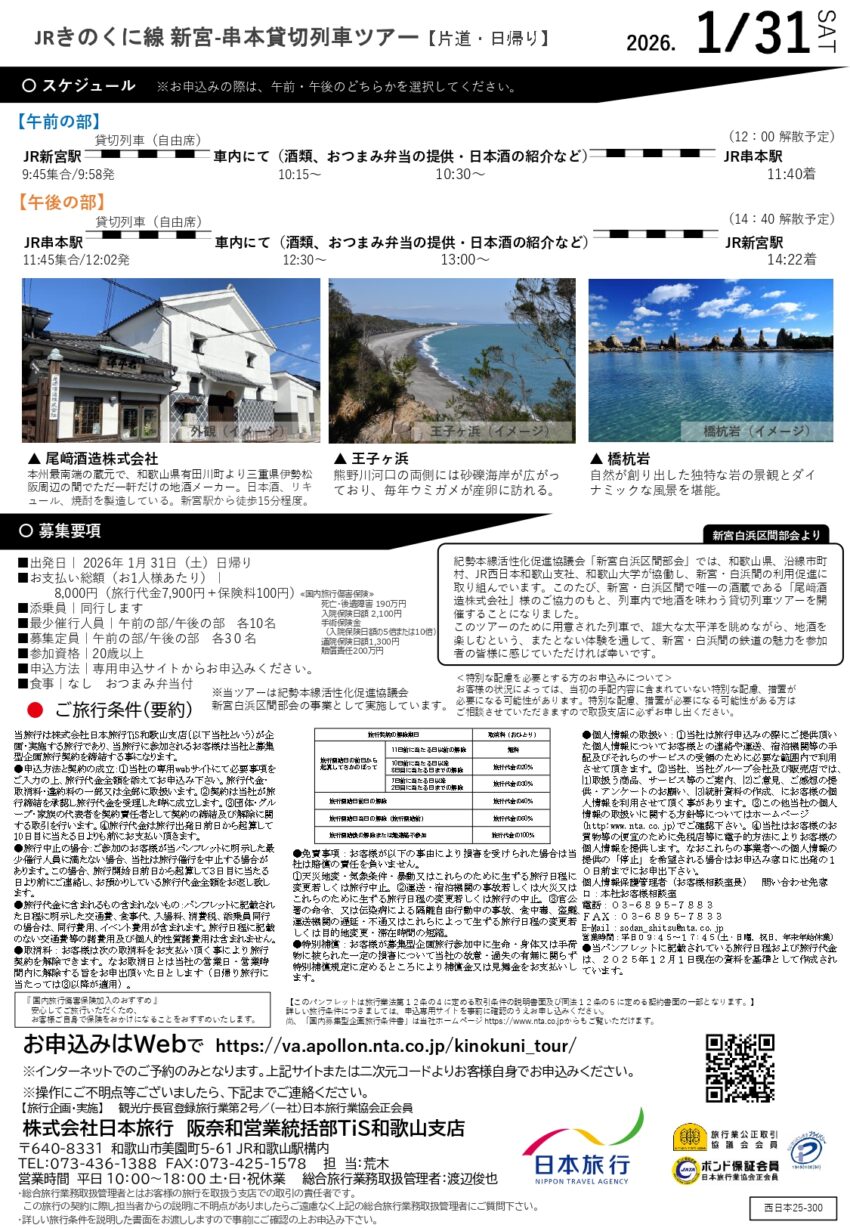 【1/31(土)開催】JRきのくに線 新宮-串本間で地酒を味わう!貸切列車ツアー【申込1/20(火)〆】