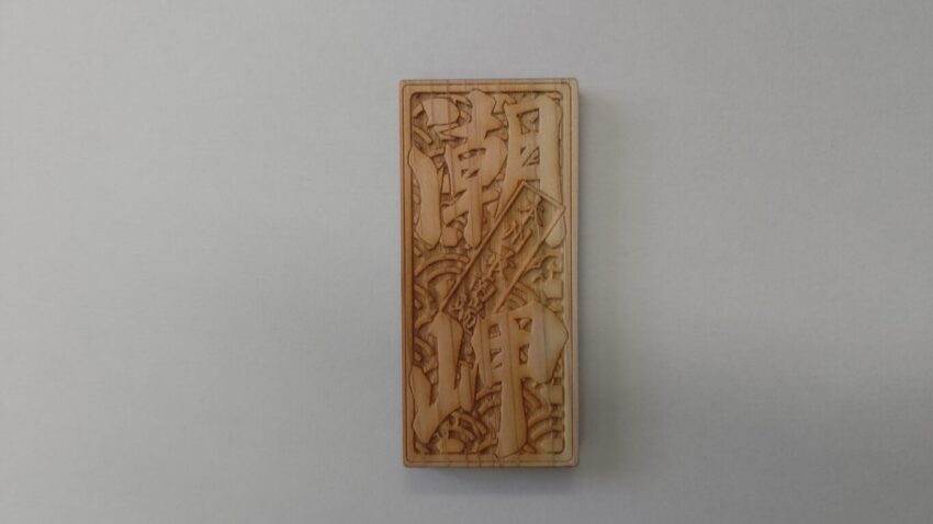 ロケットエンブレム等がプリントされたひのき使用のプレートです。