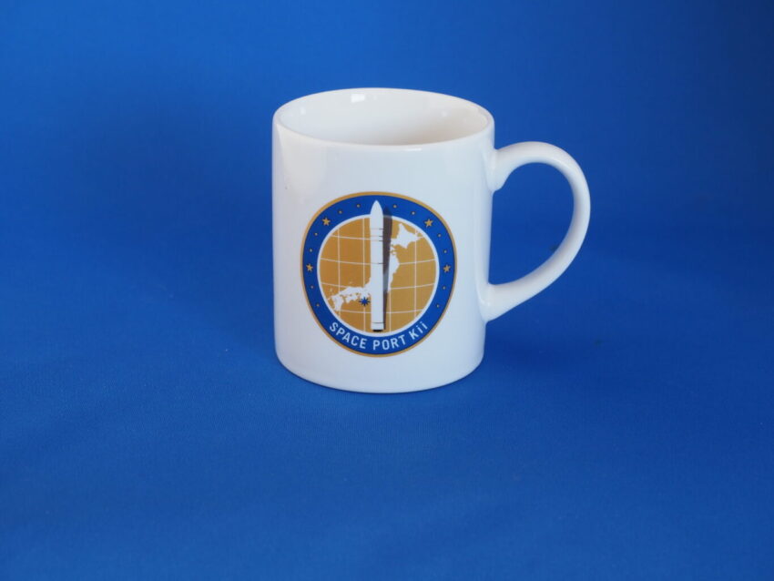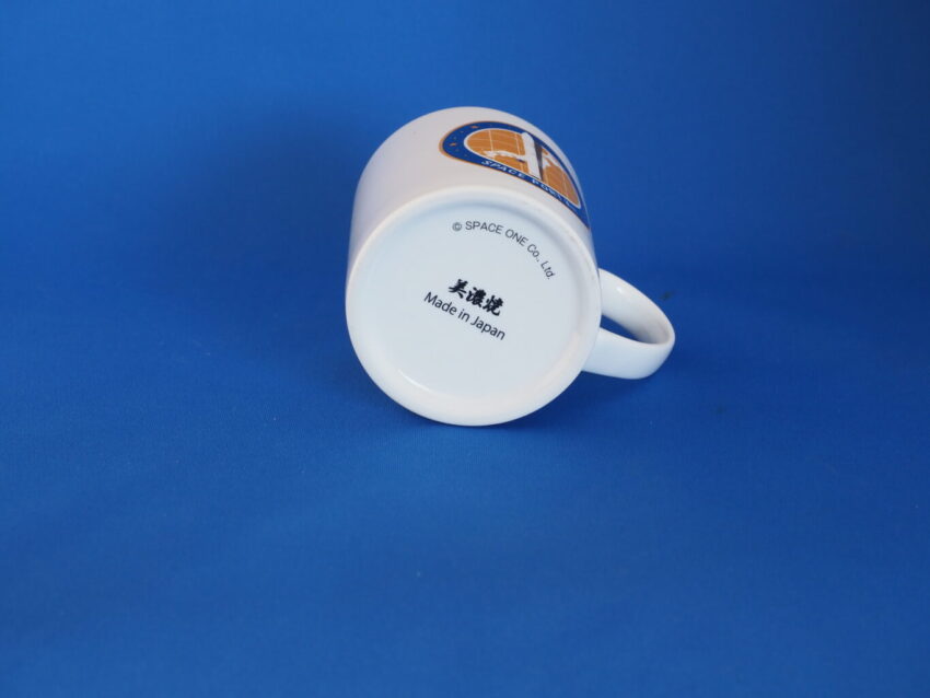 ロケットエンブレム等がプリントされた美濃焼マグカップです。