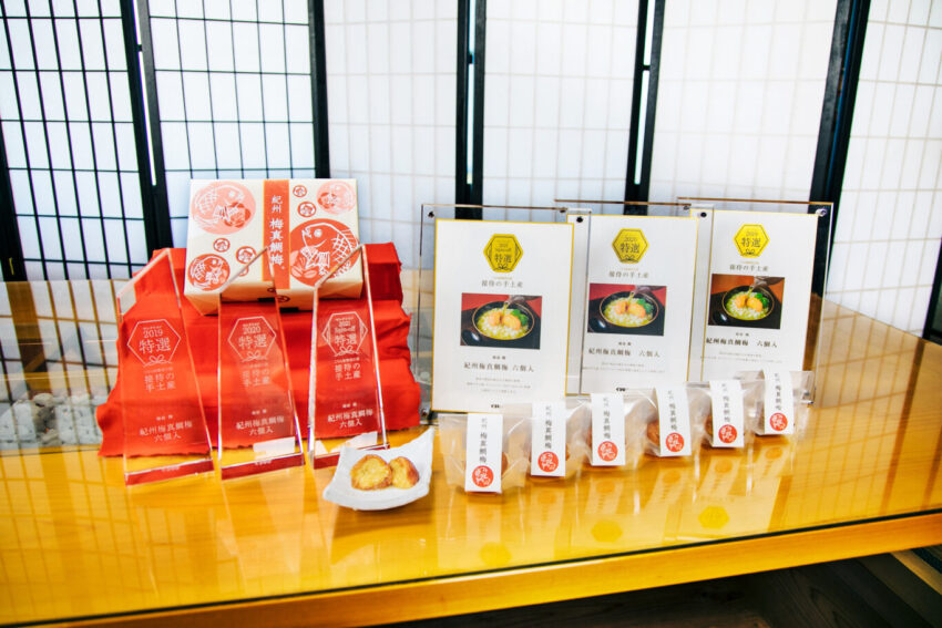 紀州南高梅の種を取り、中に甘酢みそで味付けした「紀州梅まだい」のほぐし身を詰めております。