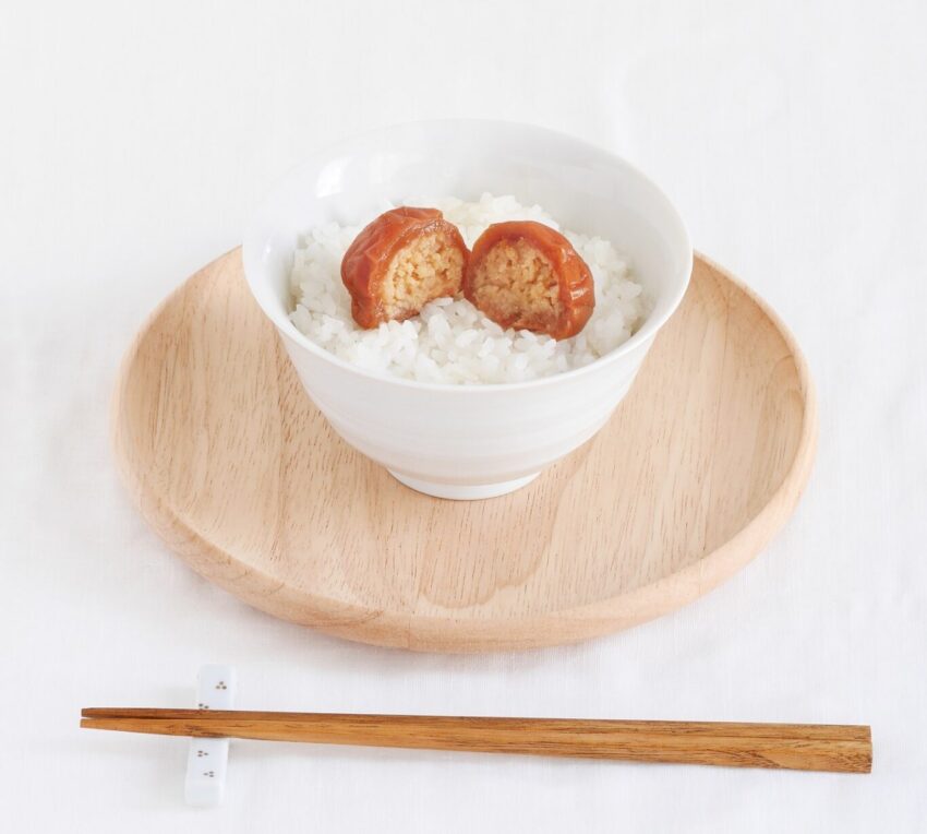 梅干しは、和歌山県産の「南高梅」を使用しております。果肉がふっくらと柔らかい大きな粒揃いの梅は、塩分控えめで、梅の風味を生かした深みのある味わいに仕上がっております。