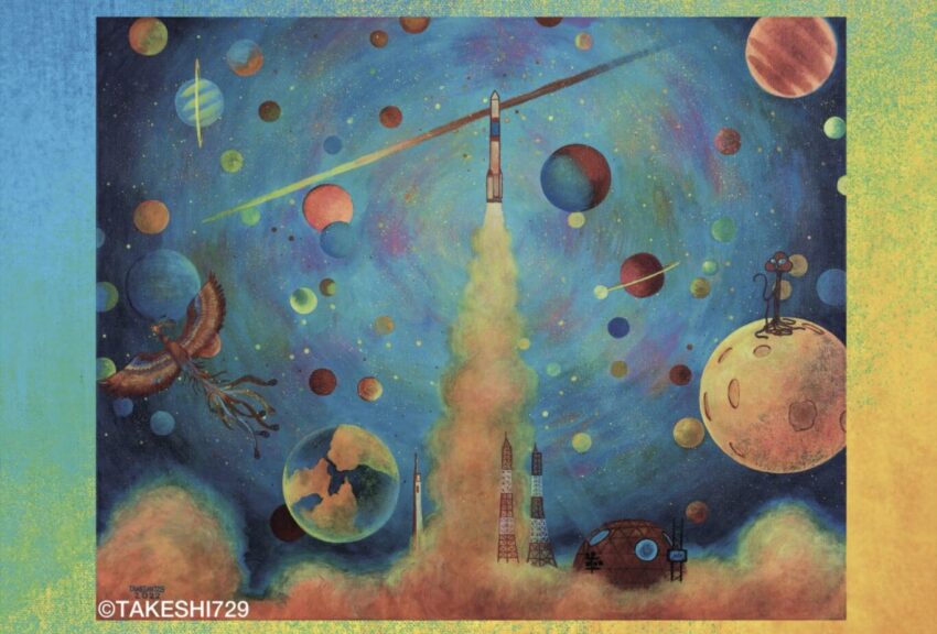 串本町の作家TAKESHI729さんによる宇宙とロケットをイメージした作品。